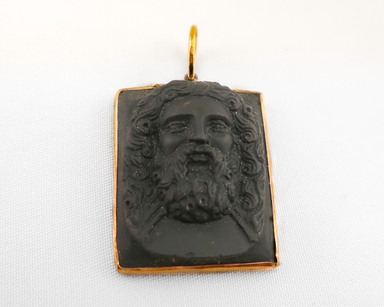 Circa 1860–1890. This Victorian lava cameo pendant features a finely carved portrait of Zeus (Jupiter), executed in Vesuvian lava sourced from the ...