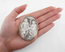 The brooch measures 66mm long by 50mm wide.
