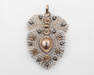 Circa 1790–1820. This Georgian diamond pendant/brooch is a remarkable example of early hand-fabricated jewelry, composed in an intricate heart-shaped design of fine wirework and delicate lattice.