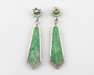 The jade dangle earrings measure 2.25 inches in length and are .5 inches wide..