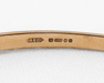 Dated 1990; London, England. This beautiful 9KT yellow gold Victorian-style bracelet is crafted in a two-section hinged bangle design. The top section is set with 11 round mixed-cut sapphires, alternating with 20 round brilliant-cut diamonds, arranged in a continuous decorative row. The sapphires total 2.70 carats. The diamonds weigh .20 carats, with I1 clarity and H-I color. Engraved scroll motifs adorn the sides of the gemstone settings. The interior of the bracelet bears London, England hallmarks, along with the date letter "Q," which corresponds to 1990. The bracelet fits a 6.5-inch wrist.