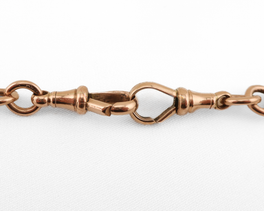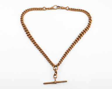 Circa 1890. This authentic Victorian watch chain is crafted in warm 9KT gold with classic curb links and a traditional T-bar clasp. Originally worn...