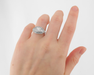 The ring measures 11.2mm at the top, rises 5.7mm above the finger, tapering to 1.5mm wide and 1.0mm thick at the base of the shank.