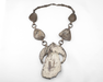 The dramatic naja is flanked by claw elements—powerful symbols of protection and strength—suggesting a piece made with meaning beyond ornament. At the center sits a luminous white cabochon, most consistent with mother-of-pearl, chosen for its reflective, light-bringing qualities. The necklace is unsigned, which is entirely consistent with older, more traditional work, particularly pieces made for personal, community, or ceremonial use rather than for gallery sale.