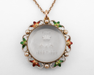 This beautifully preserved late-Victorian memorial pendant features a rock crystal quartz panel engraved “From A & H, 1892–1904,” surmounted by a crown motif. Surrounding the inscription is an elegant openwork frame decorated with colorful enamel foliage and accented by natural seed pearls, all rendered in the refined, romantic style characteristic of the late 19th century. Memorial pieces like this were created to honor love, loyalty, and memory - and intended to be worn close to the heart. The pendant is accompanied by a 9KT yellow gold chain measuring 16 inches, fitted with a spring ring clasp.