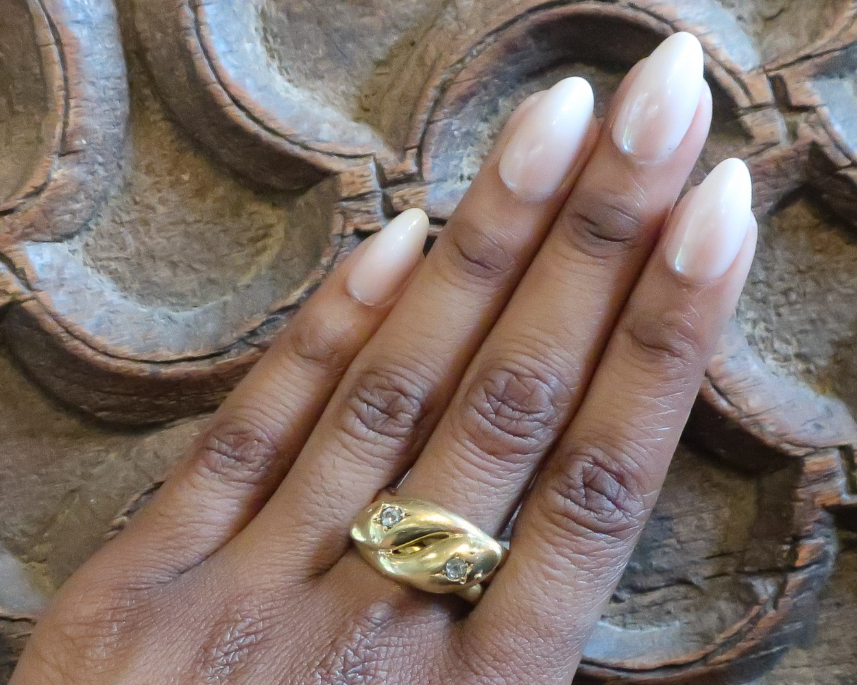 Ring sizing is complimentary for most of our pieces and takes approximately two weeks to complete. If the ring needs to be sized up two or more sizes, an additional charge will be applied, depending on the piece.